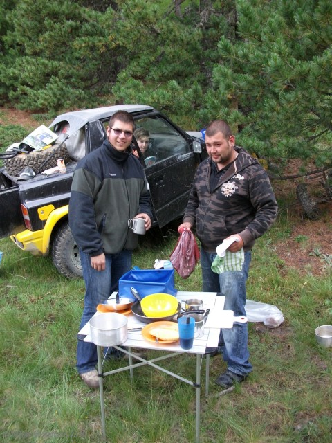 Erstmal durfen sich Micheal und Yves beim Abspülen so richtig nützlich machen. Zuvor hatten wir noch die Nudelreste vom Vorabend in die Pfanne geworfen… Lecker…