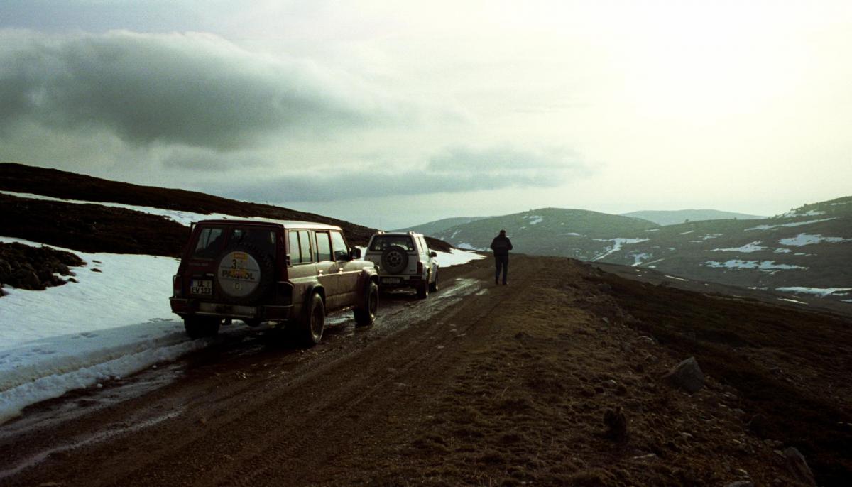 25km schönste Off-Road-Piste und dann, einen Kilometer vor der Hauptstraße das: Schnee